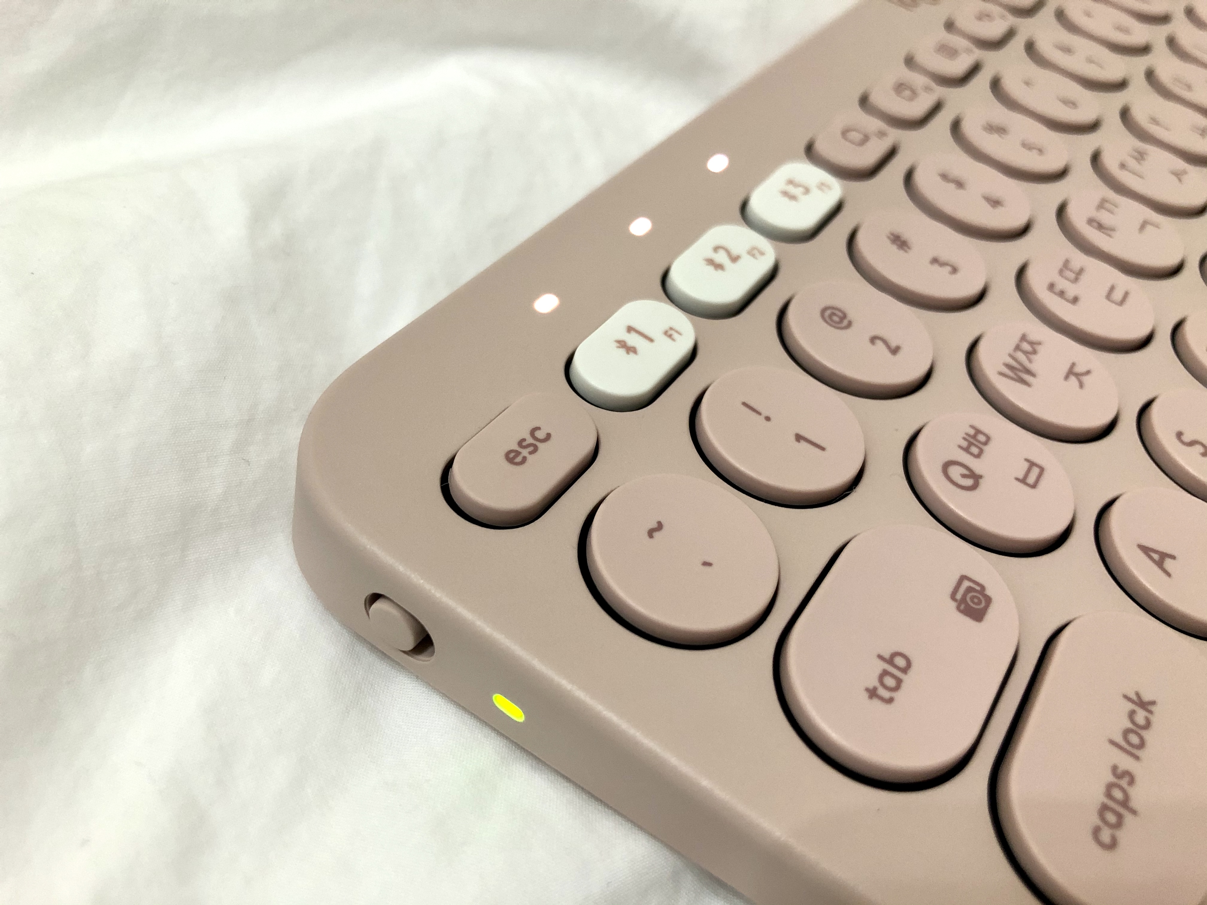 로지텍 키보드 좌측상단 전원버튼 눌러주면