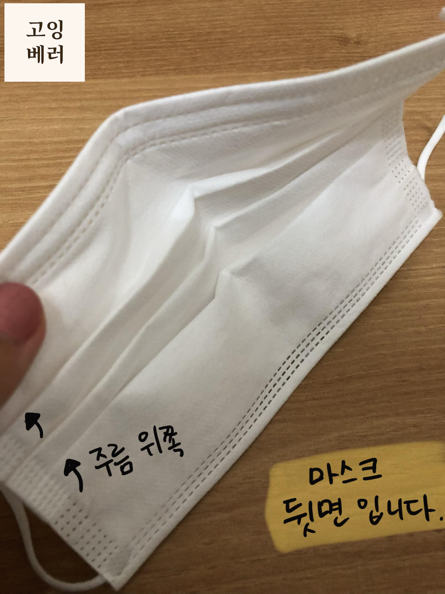 바로 마스크 주름 방향을 통해서 마스크 앞뒤를