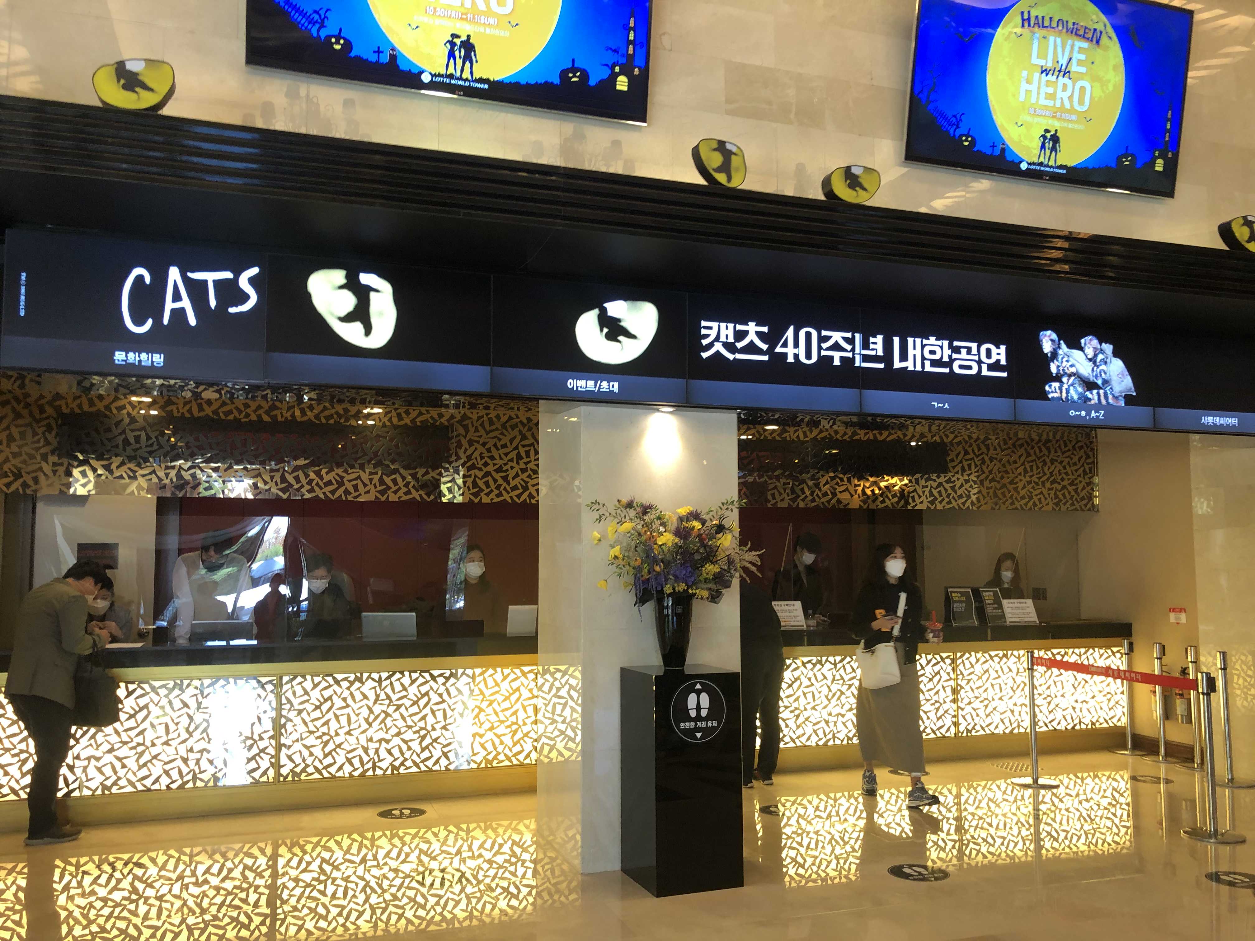 뮤지컬 <캣츠> 40주년 내한공연은 코로나로 무대와 객석간의 거리를 유지하는데 신경 쓴 모습이 보이더라구용. 좌석 간 거리두고, 공연장의 정기적인 방역, 공연장 및 객석 내 마스크 착용 의무화, 문진표 작성, 입장 시 체온체크 등 꼼꼼히 예방수칙을 이행하고 있어서 안심하고 관람할 수 있었답니다.